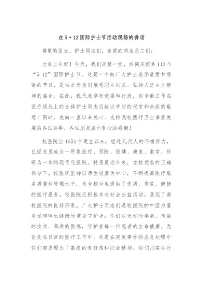 【七哥公文】2024年:在5·12国际护士节活动现场的讲话+更多免费公文+VX:QiGeGongWen2024