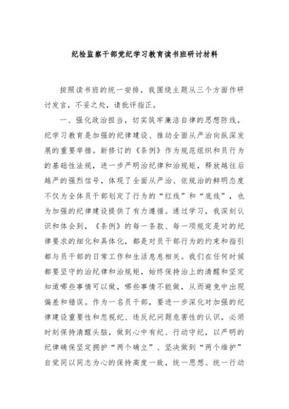 / 【七哥公文】2024年:纪检监察干部党纪学习教育读书班研讨材料+更多免费公文+VX:QiGeGongWen2024