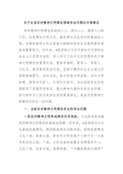 / 【七哥公文】2024年:关于全县农村精神文明建设领域存在问题及对策建议+更多免费公文+VX:QiGeGongWen2024