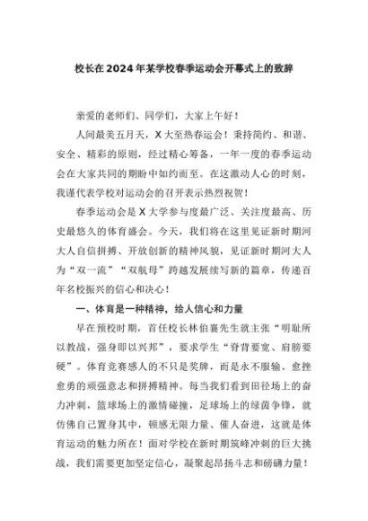 / 【七哥公文】2024年:校长在2024年某学校春季运动会开幕式上的致辞+更多免费公文+VX:QiGeGongWen2024