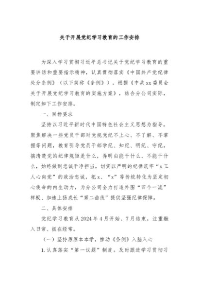 / 【七哥公文】2024年:关于开展党纪学习教育的工作安排+更多免费公文+VX:QiGeGongWen2024