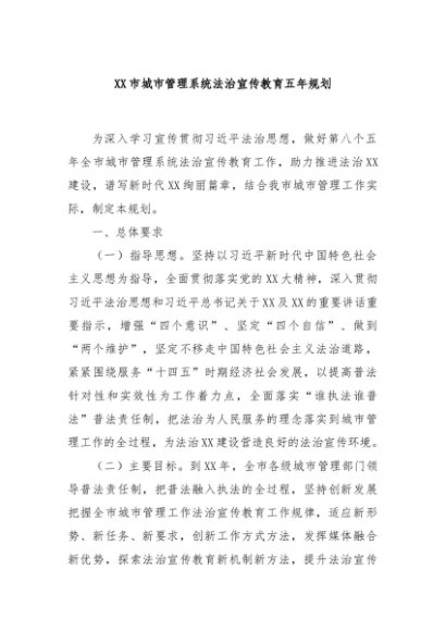 / 【七哥公文】2024年:XX市城市管理系统法治宣传教育五年规划+更多免费公文+VX:QiGeGongWen2024