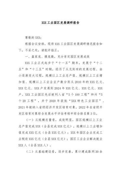 / 【七哥公文】2024年:XXX工业园区发展调研报告+更多免费公文+VX:QiGeGongWen2024