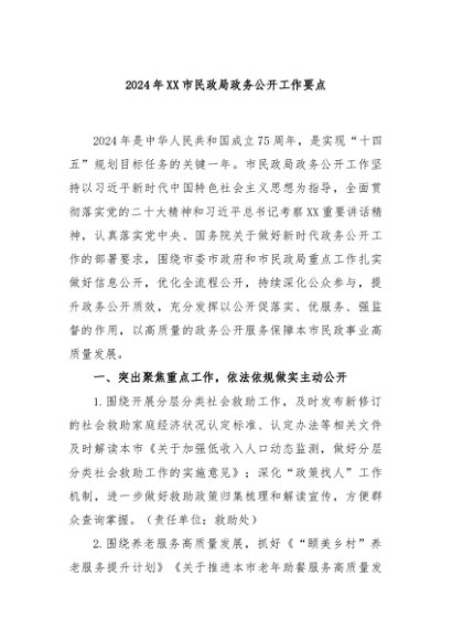 / 【七哥公文】2024年:2024年XX市民政局政务公开工作要点+更多免费公文+VX:QiGeGongWen2024