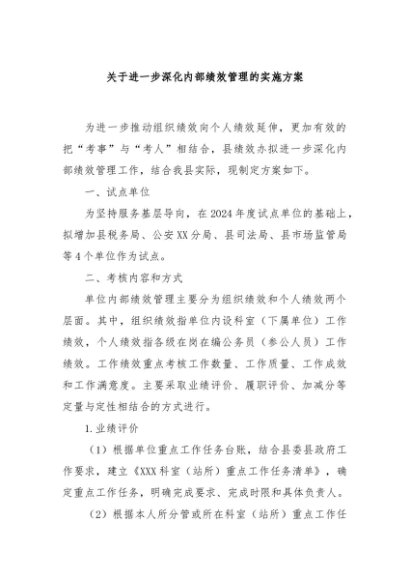 / 【七哥公文】2024年:关于进一步深化内部绩效管理的实施方案+更多免费公文+VX:QiGeGongWen2024