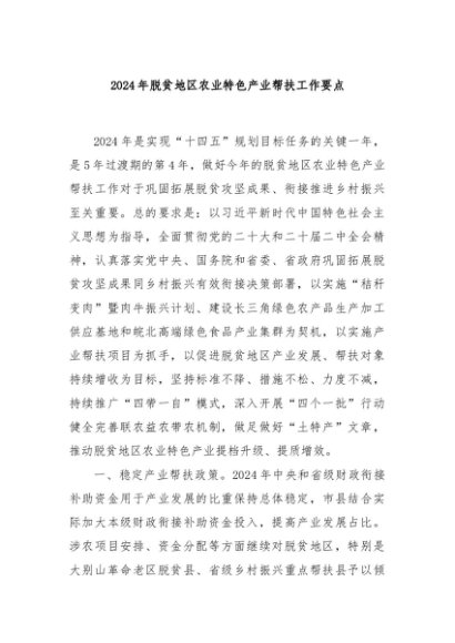 / 【七哥公文】2024年:2024年脱贫地区农业特色产业帮扶工作要点+更多免费公文+VX:QiGeGongWen2024