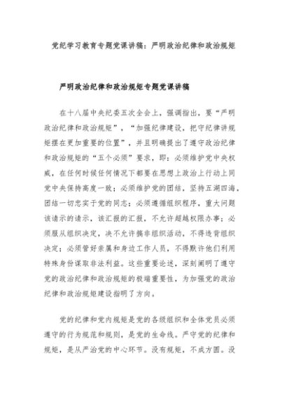 / 【七哥公文】2024年:党纪学习教育专题党课讲稿:严明政治纪律和政治规矩+更多免费公文+VX:QiGeGongWen2024
