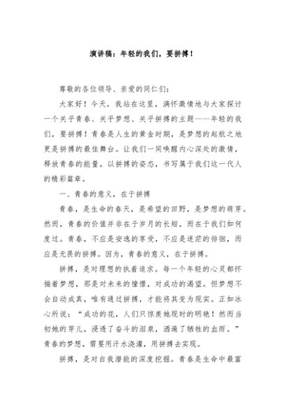 【七哥公文】2024年:演讲稿:年轻的我们,要拼搏!+更多免费公文+VX:QiGeGongWen2024