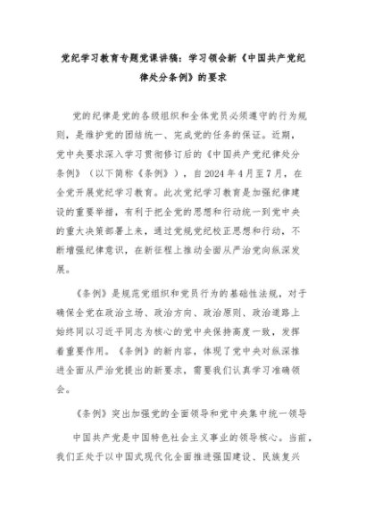 【七哥公文】2024年:党纪学习教育专题党课讲稿:学习领会新《中国共产党纪律处分条例》的要求+更多免费公文+VX:QiGeGongWen2024 - 七哥-AI智库