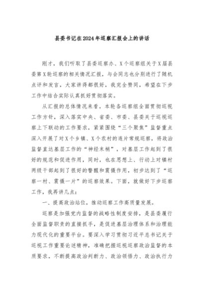 / 【七哥公文】2024年:县委书记在2024年巡察汇报会上的讲话+更多免费公文+VX:QiGeGongWen2024