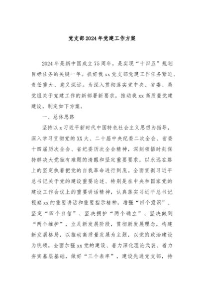 / 【七哥公文】2024年:党支部2024年党建工作方案+更多免费公文+VX:QiGeGongWen2024