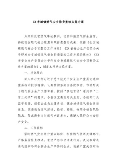 / 【七哥公文】2024年:XX市城镇燃气安全排查整治实施方案+更多免费公文+VX:QiGeGongWen2024