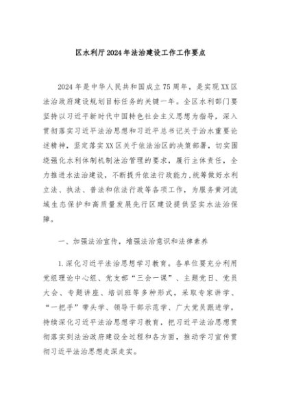 / 【七哥公文】2024年:区水利厅2024年法治建设工作工作要点+更多免费公文+VX:QiGeGongWen2024
