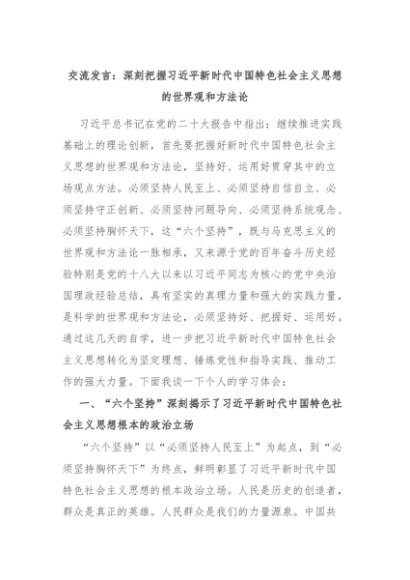 【七哥公文】2024年:交流发言:深刻把握习近平新时代中国特色社会主义思想的世界观和方法论+更多免费公文+VX:QiGeGongWen2024