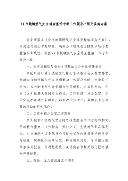 【七哥公文】2024年:XX市城镇燃气安全排查整治专班工作领导小组及实施方案+更多免费公文+VX:QiGeGongWen2024