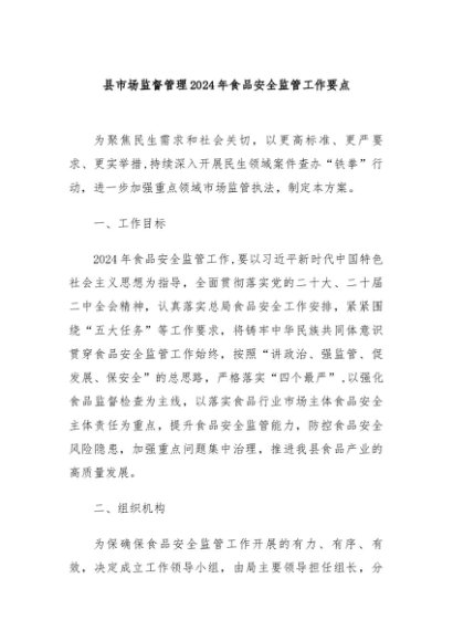 / 【七哥公文】2024年:县市场监督管理2024年食品安全监管工作要点+更多免费公文+VX:QiGeGongWen2024