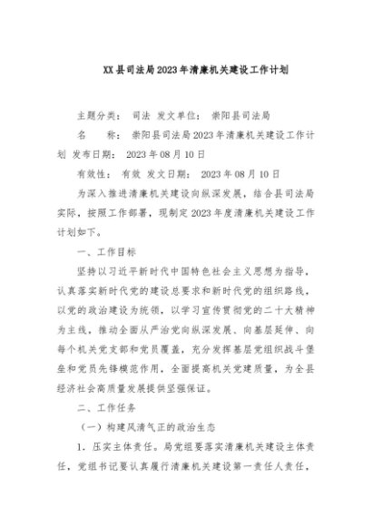 / 【七哥公文】2024年:XX县司法局2023年清廉机关建设工作计划+更多免费公文+VX:QiGeGongWen2024