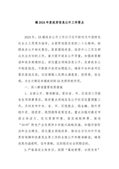 / 【七哥公文】2024年:镇2024年度政府信息公开工作要点+更多免费公文+VX:QiGeGongWen2024