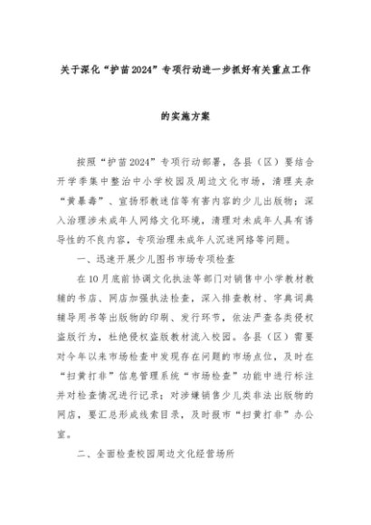 【七哥公文】2024年:关于深化“护苗2024”专项行动进一步抓好有关重点工作的实施方案+更多免费公文+VX:QiGeGongWen2024