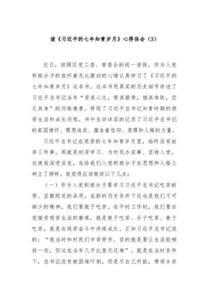 / 【七哥公文】2024年:读《习近平的七年知青岁月》心得体会(3)+更多免费公文+VX:QiGeGongWen2024