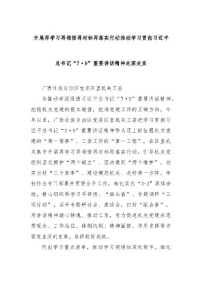 【七哥公文】2024年:开展再学习再领悟再对标再落实行动推动学习贯彻习近平总书记“7·9”重要讲话精神走深走实+更多免费公文+VX:QiGeGongWen2024