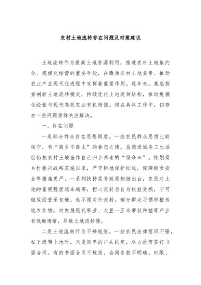 / 【七哥公文】2024年:农村土地流转存在问题及对策建议+更多免费公文+VX:QiGeGongWen2024