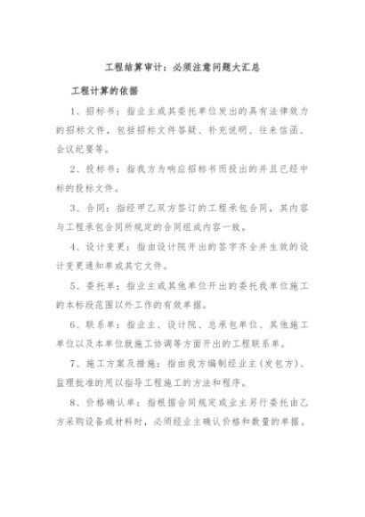 / 【七哥公文】2024年:工程结算审计:必须注意问题大汇总+更多免费公文+VX:QiGeGongWen2024