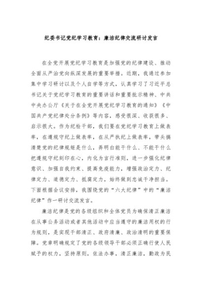 / 【七哥公文】2024年:纪委书记党纪学习教育:廉洁纪律交流研讨发言+更多免费公文+VX:QiGeGongWen2024