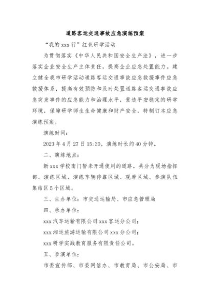 【七哥公文】2024年:道路客运交通事故应急演练预案+更多免费公文+VX:QiGeGongWen2024