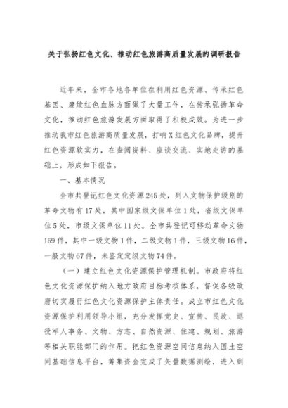 【七哥公文】2024年:关于弘扬红色文化、推动红色旅游高质量发展的调研报告+更多免费公文+VX:QiGeGongWen2024