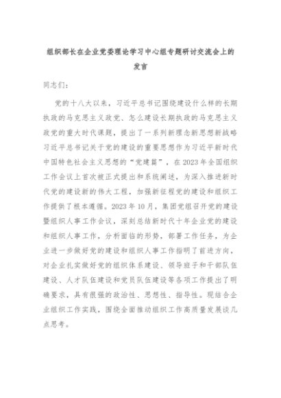 【七哥公文】2024年:组织部长在企业党委理论学习中心组专题研讨交流会上的发言+更多免费公文+VX:QiGeGongWen2024