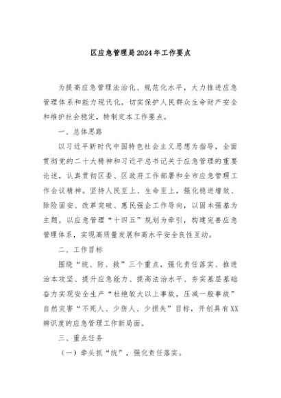 / 【七哥公文】2024年:区应急管理局2024年工作要点+更多免费公文+VX:QiGeGongWen2024