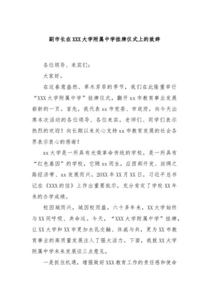 / 【七哥公文】2024年:副市长在XXX大学附属中学挂牌仪式上的致辞+更多免费公文+VX:QiGeGongWen2024