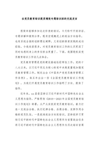/ 【七哥公文】2024年:在党员教育培训提质增效专题培训班的交流发言+更多免费公文+VX:QiGeGongWen2024