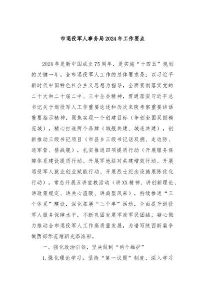 / 【七哥公文】2024年:市退役军人事务局2024年工作要点+更多免费公文+VX:QiGeGongWen2024
