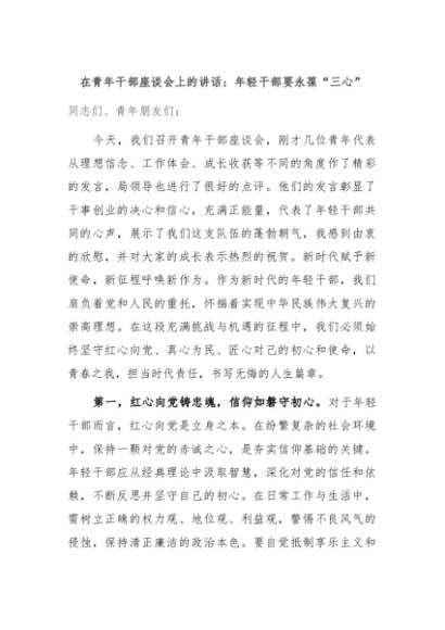 / 【七哥公文】2024年:在青年干部座谈会上的讲话:年轻干部要永葆“三心”+更多免费公文+VX:QiGeGongWen2024