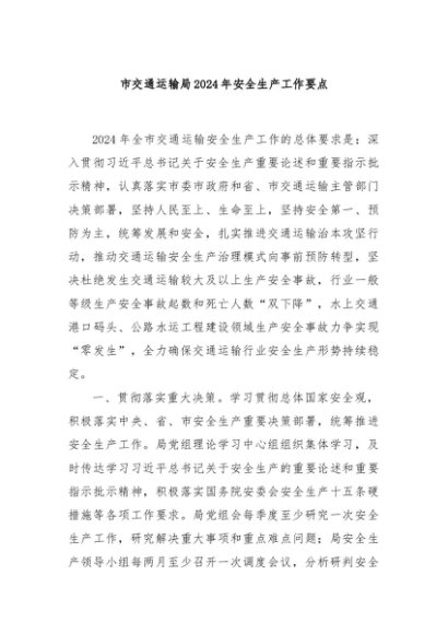 / 【七哥公文】2024年:市交通运输局2024年安全生产工作要点+更多免费公文+VX:QiGeGongWen2024