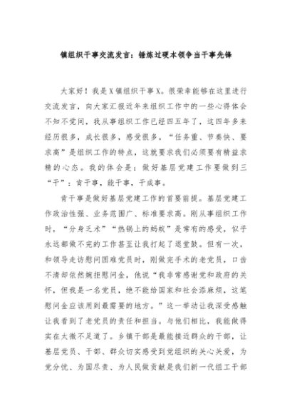 / 【七哥公文】2024年:镇组织干事交流发言:锤炼过硬本领争当干事先锋+更多免费公文+VX:QiGeGongWen2024