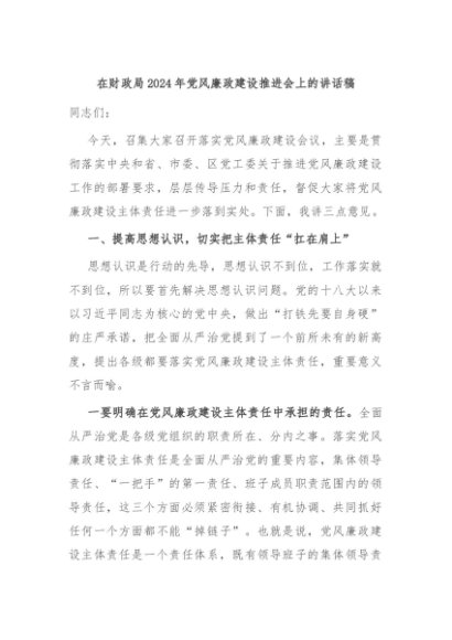 / 【七哥公文】2024年:在财政局2024年党风廉政建设推进会上的讲话稿+更多免费公文+VX:QiGeGongWen2024