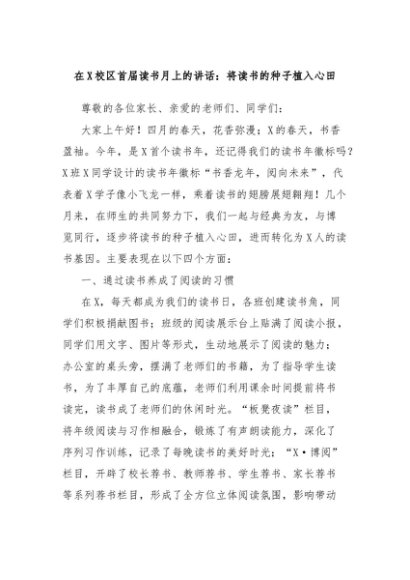 / 【七哥公文】2024年:在X校区首届读书月上的讲话:将读书的种子植入心田+更多免费公文+VX:QiGeGongWen2024