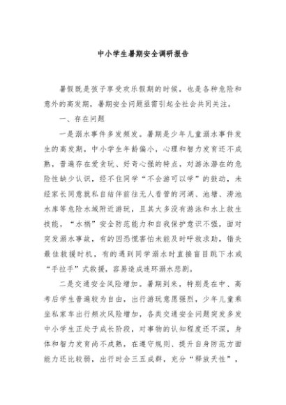 【七哥公文】2024年:中小学生暑期安全调研报告+更多免费公文+VX:QiGeGongWen2024