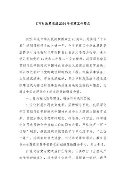 / 【七哥公文】2024年:X市财政局党组2024年党建工作要点+更多免费公文+VX:QiGeGongWen2024