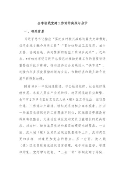 / 【七哥公文】2024年:全市驻城党建工作站的实践与启示+更多免费公文+VX:QiGeGongWen2024