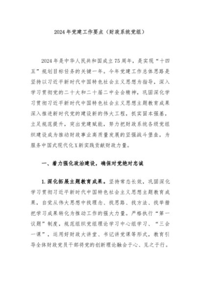 / 【七哥公文】2024年:2024年党建工作要点(财政系统党组)+更多免费公文+VX:QiGeGongWen2024