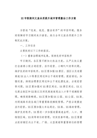 / 【七哥公文】2024年:XX市假期间文旅品质提升城市管理整治工作方案+更多免费公文+VX:QiGeGongWen2024