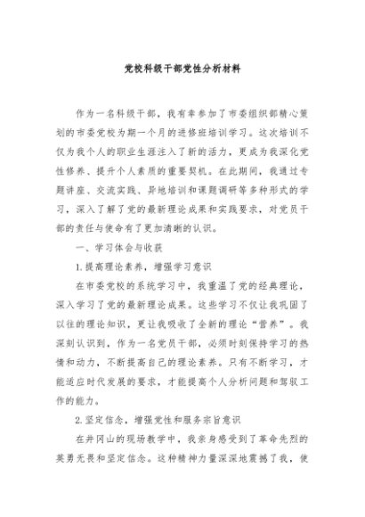 / 【七哥公文】2024年:党校科级干部党性分析材料+更多免费公文+VX:QiGeGongWen2024