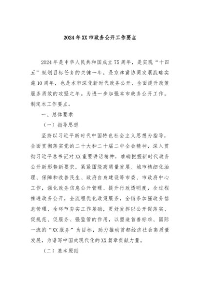 【七哥公文】2024年:2024年XX市政务公开工作要点+更多免费公文+VX:QiGeGongWen2024