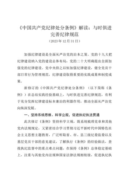 【七哥公文】2024年:《中国共产党纪律处分条例》解读:与时俱进完善纪律规范+更多免费公文+VX:QiGeGongWen2024