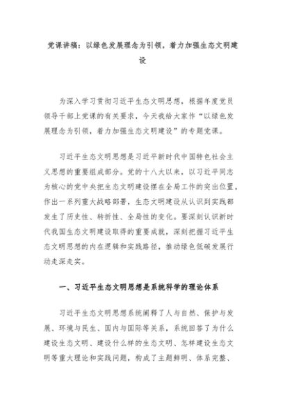 【七哥公文】2024年:党课讲稿:以绿色发展理念为引领,着力加强生态文明建设+更多免费公文+VX:QiGeGongWen2024