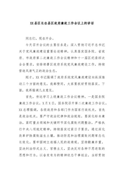 / 【七哥公文】2024年:XX县区长在县区政府廉政工作会议上的讲话+更多免费公文+VX:QiGeGongWen2024
